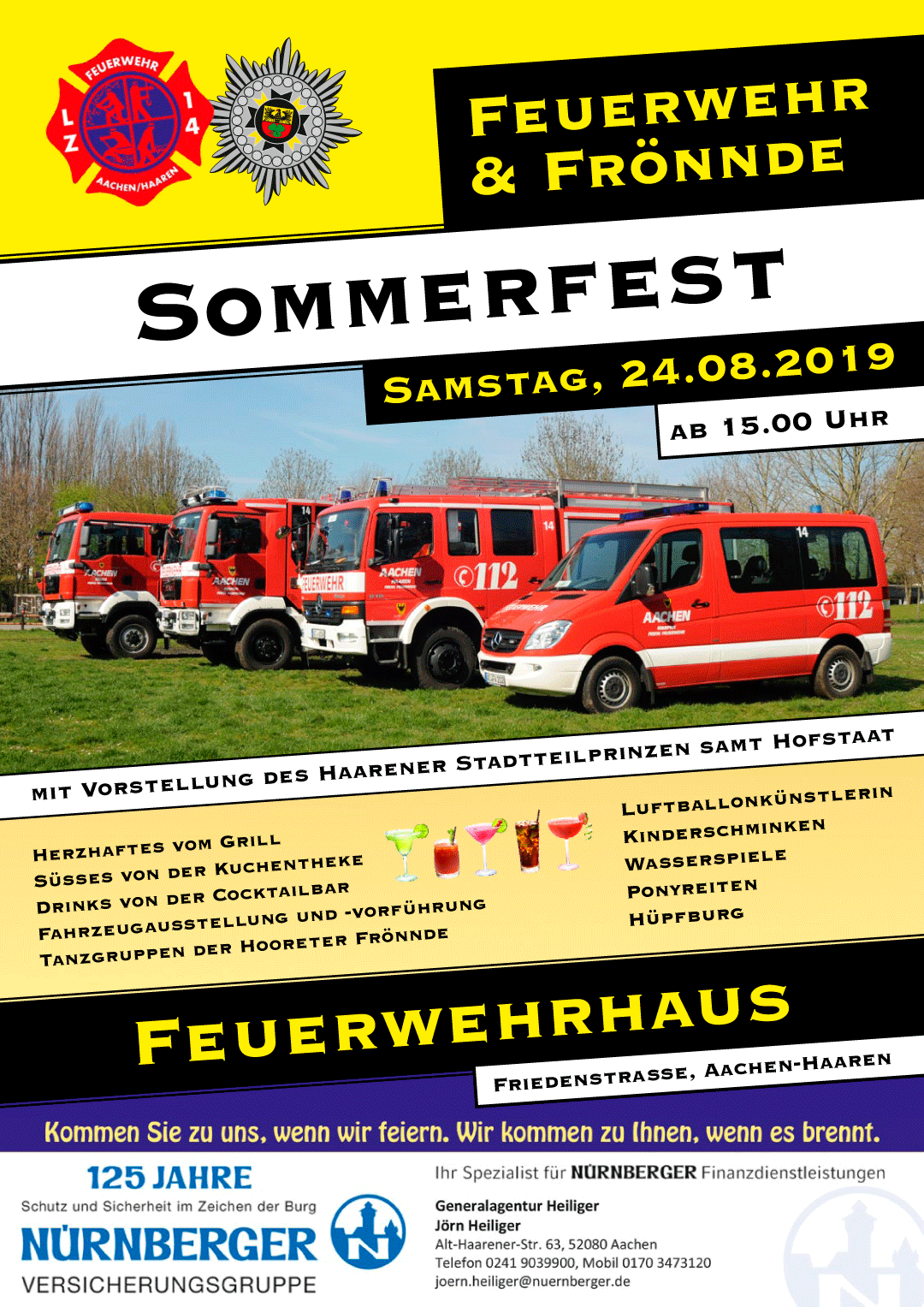 07.08.19 - Am Samstag, den 24.08.19 findet unser Sommerfest - dieses mal gemeinsam mit dem Feuerwehrfest der freiwilligen Feuerwehr Haaren - statt.